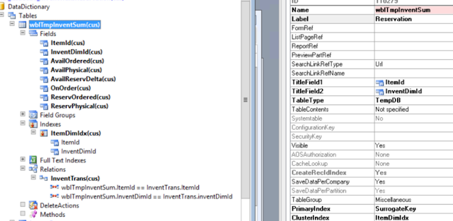 ============== We have multiple options to provide additional information to records in grids. Some of them, like display methods, are easy to implement. Some of them, like a temporary table, are not. Let's consider a scenario when our lovely user wants to see reservation info directly in the transaction grid as filterable columns. Evidently, we cannot use display methods because they cannot be filterable. Given the way this info calculated behind the curtain, there is no way to create a view to join InventTrans on InventTransItem form. So, the last feasible option is to create a temporary table and join it to the main form data source. In order to populate this TempDB table (it is not enough to create an InMemory one) as much fast as possible, we have to run the logic in CIL. The following shows how to work with such tables by passing their physical names. First, create a TempDB table. Then add it to the form data source so that it would be outer joined to InventTrans table and place its Init() method, which links the local buffer with a populated TempDB on the SQL server side. We also need to init its populating engine and calculate its data at least once when the form opens and maybe later via Refresh button for all or one particular item. final class FormRun extends ObjectRun { wblInventSumFormEngine wblInventSumFormEngine; } void init() { super(); element.wblInitParameters(); } private void wblInitParameters() { wblInventSumFormEngine = new wblInventSumFormEngine(element); } //wblTmpInventSum_DS.Init public void init() { wblTmpInventSum wblTmpInventSumLoc; wblTmpInventSumLoc.doInsert(); delete_from wblTmpInventSumLoc; super(); wblTmpInventSum.linkPhysicalTableInstance(wblTmpInventSumLoc); } public void run() { super(); element.wblRecalcData(); } public void wblRecalcData(boolean _forCurrentItemOnly = false) { wblInvenTransByItemDimView wblInvenTransByItemDimView; if(_forCurrentItemOnly) { wblInventSumFormEngine.parmItemIdCalcFor(InventTrans.ItemId); wblInventSumFormEngine.run(); } else { wblInventSumFormEngine.parmItemIdCalcFor(''); // todo: uncomment if needed to measure the execution time //wblInventSumFormEngine.parmShowCalcInfo(true); startLengthyOperation(); wblInventSumFormEngine.run(); endLengthyOperation(); } } Now let's take a look at the populating class. It has parameters for showing elapsed time and run for a particular item id only. /// /// Populating TempDB tables in CIL /// /// /// Passing physical table names between CIL and form /// public class wblInventSumFormEngine { // add more data sources to support multiple TempDB tables populating FormDataSource fdsTmpInventSum; wblTmpInventSum wblTmpInventSum; ItemId itemIdCalcFor; boolean showCalcInfo; } /// /// Gets TempDB tables physical names /// /// /// Container with names /// /// /// Creates buffers if not exist yet /// private container getTempTablesNames() { if(!wblTmpInventSum.getPhysicalTableName()) { select firstOnly wblTmpInventSum; } return [wblTmpInventSum.getPhysicalTableName()]; } /// /// Creates new populating engine for a given form /// /// /// Caller form /// /// /// Looks for a particular data sources to link TempDB tables /// public void new(FormRun _formRun = null) { Object formObject = _formRun; if (_formRun) { fdsTmpInventSum = _formRun.dataSource(tableId2Name(tableNum(wblTmpInventSum))); } } /// /// To calculate TempDB table for a particular item only /// /// /// Item id to calculate data /// /// /// Item id /// /// /// If empty, then calculate for all items /// public ItemId parmItemIdCalcFor(ItemId _parm = itemIdCalcFor) { itemIdCalcFor = _parm; return itemIdCalcFor; } /// /// Show consumed time to populate TempDB tables /// /// /// Shows if True /// public boolean parmShowCalcInfo(boolean _parm = showCalcInfo) { showCalcInfo = _parm; return showCalcInfo; } public void run() { str wblTmpInventSumTempDBTableName; // add here more tempDB tables if needed [wblTmpInventSumTempDBTableName] = this.getTempTablesNames(); [wblTmpInventSumTempDBTableName] = wblInventSumFormEngine::calc([itemIdCalcFor, wblTmpInventSumTempDBTableName, showCalcInfo]); // push calculated data back to the form data source if(fdsTmpInventSum) { // this assignment works only on the client tier outside of the populating method fdsTmpInventSum.cursor().linkPhysicalTableInstance(wblTmpInventSum); fdsTmpInventSum.research(); } } /// /// Launcher for CIL /// /// /// Container with parameters and all TempDB tables physical names to populate /// /// /// Container with all populated TempDB tables physical names /// private static server container calc(container _cont) { container cont; XppILExecutePermission xppILExecutePermission; FromTime startTime = timeNow(); ItemId itemIdCalcFor = conPeek(_cont, 1); boolean showCalcInfo = conPeek(_cont, 3); xppILExecutePermission = new XppILExecutePermission(); xppILExecutePermission.assert(); cont = runClassMethodIL( classStr(wblInventSumFormEngine), staticMethodStr(wblInventSumFormEngine, calcIL), _cont ); CodeAccessPermission::revertAssert(); if(showCalcInfo) { info(strFmt("Refreshed for %1 in %2", itemIdCalcFor ? itemIdCalcFor : "all items", timeConsumed(startTime, timeNow()))); } return cont; } /// /// Implements the calculating logic and populating TempDB tables /// /// /// Container with parameters and all TempDB tables physical names to populate /// /// /// Container with all populated TempDB tables physical names private static server container calcIL(container _con) { WHSInventReserve whsInventReserve; wblTmpInventSum wblTmpInventSum; ItemId itemIdCalcFor = conPeek(_con, 1); str wblTmpInventSumTempDBTableName = conPeek(_con, 2); wblInvenTransByItemDimView wblInvenTransByItemDimView; // Link to an exiting table wblTmpInventSum.useExistingTempDBTable(wblTmpInventSumTempDBTableName); // empty existing data wblInventSumFormEngine::cleanTmpInventSum(wblTmpInventSum, itemIdCalcFor); /***** Implements the calculating logic here *****/ while select whsInventReserve join RecId from wblInvenTransByI
